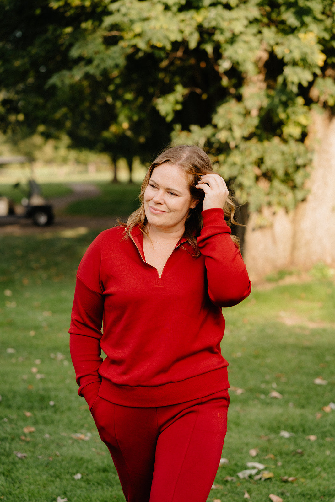Introducing the Fore Chicks Gold Zip Scuba Quarter-Zip Sweater — a modern take on classic golf style. Crafted from our premium scuba blend (Rayon/Polyester/Spandex), this pullover offers a soft, silky feel with just the right amount of stretch. Designed for movement, it’s breathable enough for active days on the course yet warm enough for crisp mornings or cozy lounging.