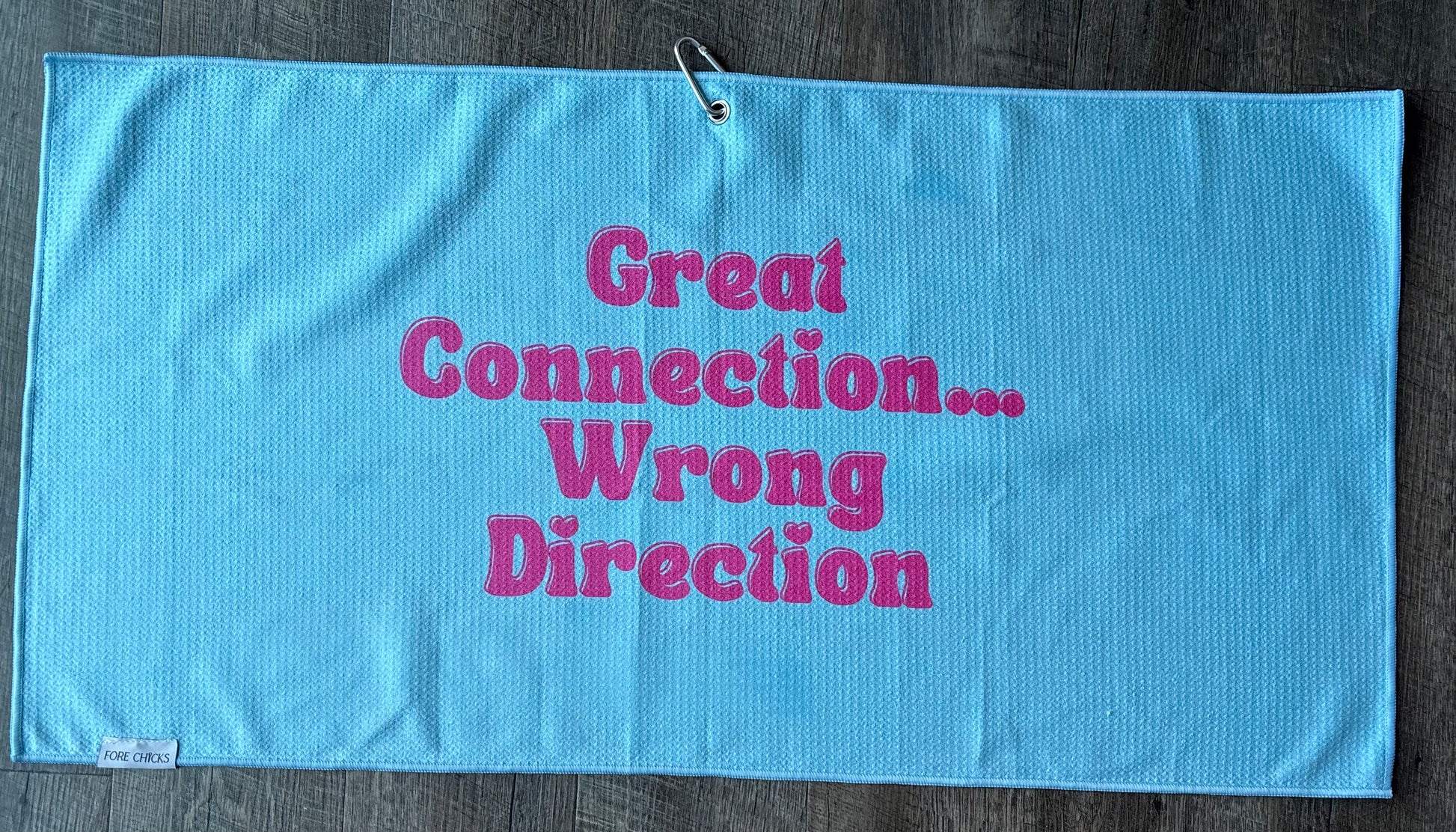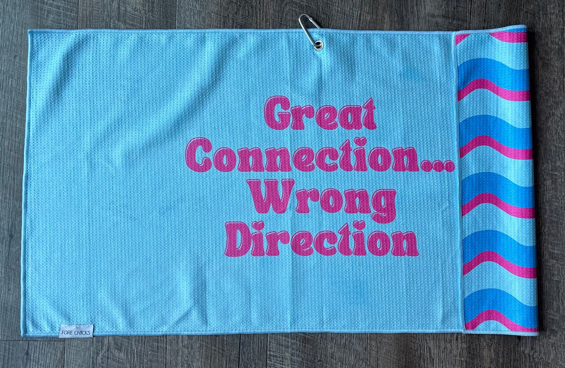The Great Connection, Wrong Direction Golf Towel is made for golfers who can laugh it off and keep swinging.